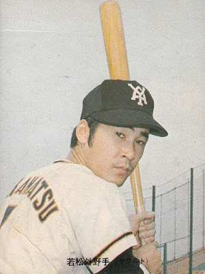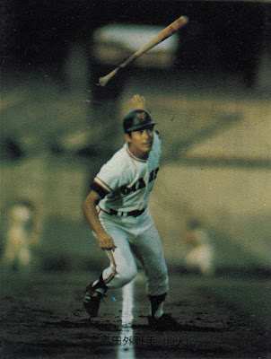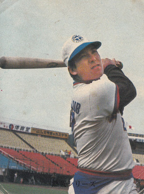 This card of Tsutomu Wakamatsu is also listed as "damaged". It has a couple creases but still looks pretty good for a 45 year old card of a Hall Of Famer. It was 300 yen: