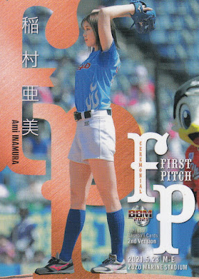 Several of these people have appeared in previous subsets - Tamai appeared in the 2018 Fusion set; Suzuki was in the 2012 2nd Version set (when he was eight!) and Kubo was in last year's Fusion set. Even the anime character Conan Edogawa was in a previous set - the 2011 2nd Version set. This is Makino's fourth appearance in one of these subsets - she was previously in the 2017 2nd Version, 2018 2nd Version and 2019 Fusion sets. That's two fewer than our returning champion, Idol/announcer Ami Inamura, who is appearing in her sixth BBM "Ceremonial First Pitch" subset after previously being in the 2016 2nd Version and Fusion sets, the 2017 2nd Version and Fusion sets and the 2018 Fusion set. If you include the "secret" version of her 2017 2nd Version card, the six "Sports Card Magazine" insert cards of her and the two Epoch JWBL "First Pitch" cards of her, this is the 15th card of her doing a first pitch ceremony.