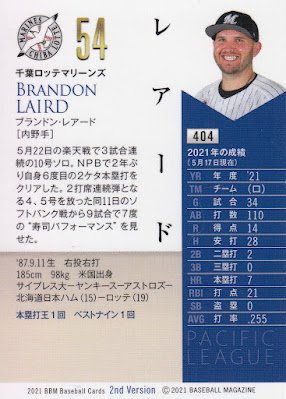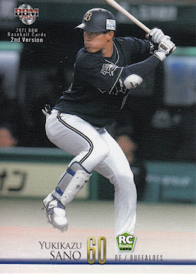 There's 43 players who appear in the "regular" cards of the set who were not in this year's 1st Version set. I'm not positive but I think that might be the most ever. It's certainly the most over the past several years. This I think is partly driven by the number of foreign players who were left out of 1st Version due to their late arrival in Japan this spring. My reasoning for this is kind of roundabout - there's a whole bunch of foreign players in the 1st Version update subset for this set and I'd guess that that pushed some guys who would have normally been in that subset into the regular set (if that make sense). There's still several foreigners with "regular" cards who weren't in 1st Version - Brandon Laird, Cy Sneed, Joe Gunkel, Jefry Marte and Reed Garrett. Most of the other players are simply players who are making more of an impact for their team than BBM expected like Daiki Asama, Yuma Mune, Yuki Takahashi, Chihaya Sasaki and Sho Iwasaki.
